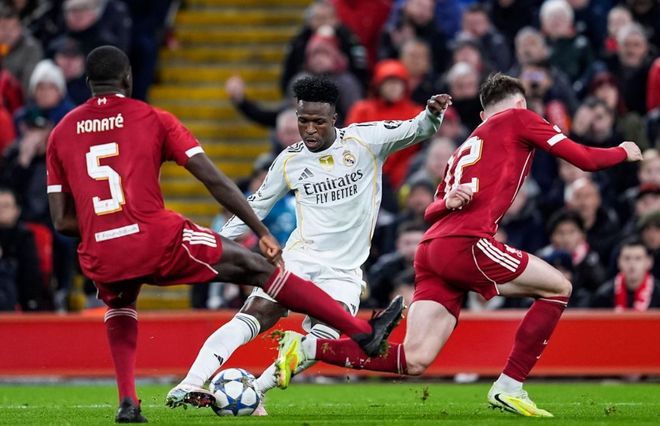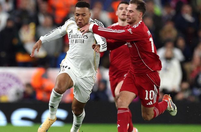 利物浦开场后进攻踢得更加犀利,麦卡利斯特、埃基蒂克、索博斯洛伊和范戴克都创造出了很好的机会,但是他们的射门都没有打进。皇马的机会并不多,姆巴佩射门质量极差。半场比赛结束,比分依然是0-0!皇马上半场控球率60%,5次射门,2次射正,没能进球。利物浦上半场创造出了更多的机会,有9次射门,4次射正,同样没有进球。
